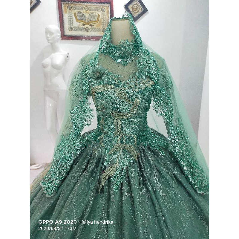 Harga preloved baju pengantin ekor full payet warna hijau mint ukiran l · rp200.000.